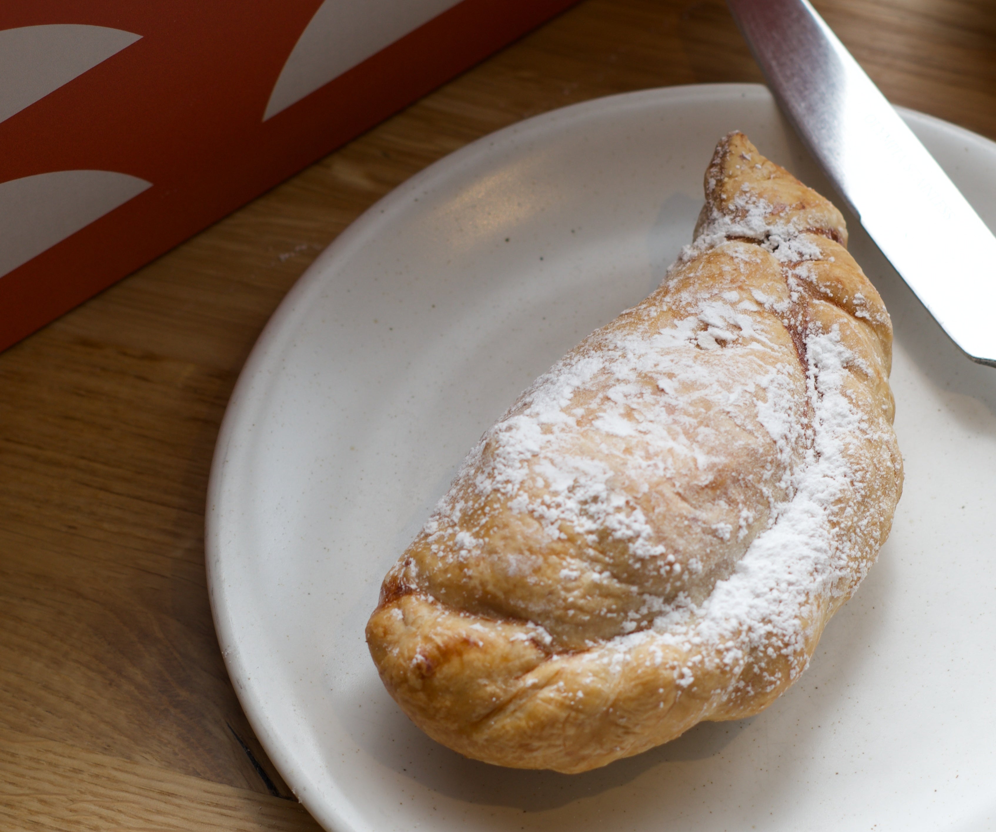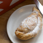 Cornish apples and gently stewed stems of rhubarb are drizzled with custard and then wrapped in our delicate flaky pastry.